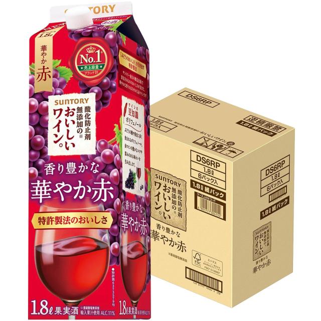 サントリー 酸化防止剤無添加のおいしいワイン 赤<紙パック>1800ml(1.8L)×6本/1ケース