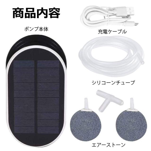 ポータブル式エアポンプ ソーラー充電 エアーストーン付き USB充電 2WAY 酸素ポンプ 可動式パネル 強/弱/間欠の3モード 約1L/m BSVAP007