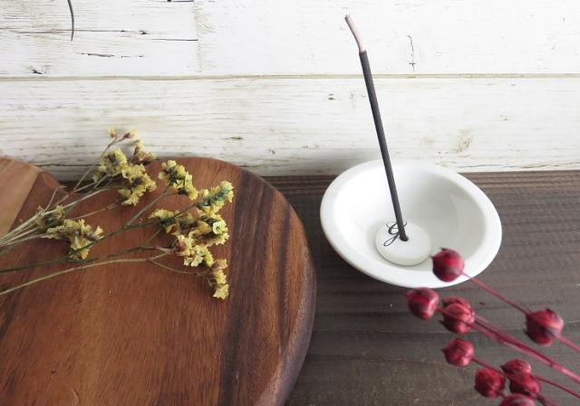 お洒落な白の専用香立てが附属しています。付属の香立てに挿してお使いください。
