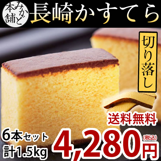 カステラ 送料無料 訳あり 6本セット 1.5kg 長崎かすてら 切り落とし プレーン お取り寄せ お取り寄せグルメ みかど本舗 和菓子 洋菓子 ケーキ スイーツ