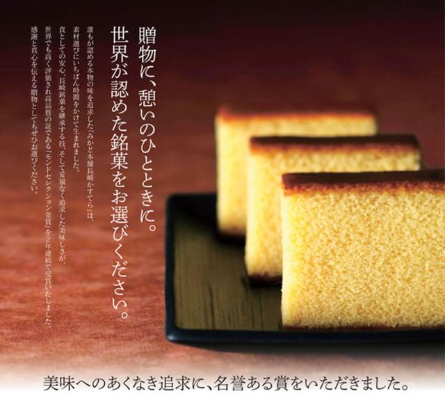 長崎かすてら 切り落とし。 本場長崎の味を妥協なく求めた「みかど本舗」の自信作。ふっくらなのに、食べるほどにしっとり感が伝わります。
