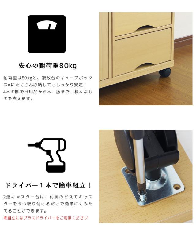 2連登場 キューブボックスα専用 キャスター台 ダブル キャスター付き キューブボックス カラーボックス