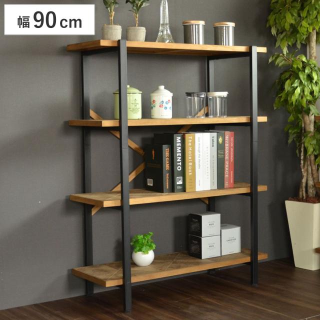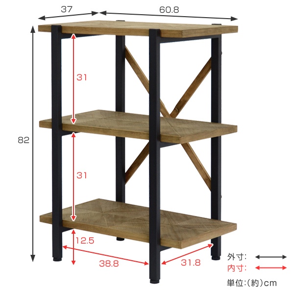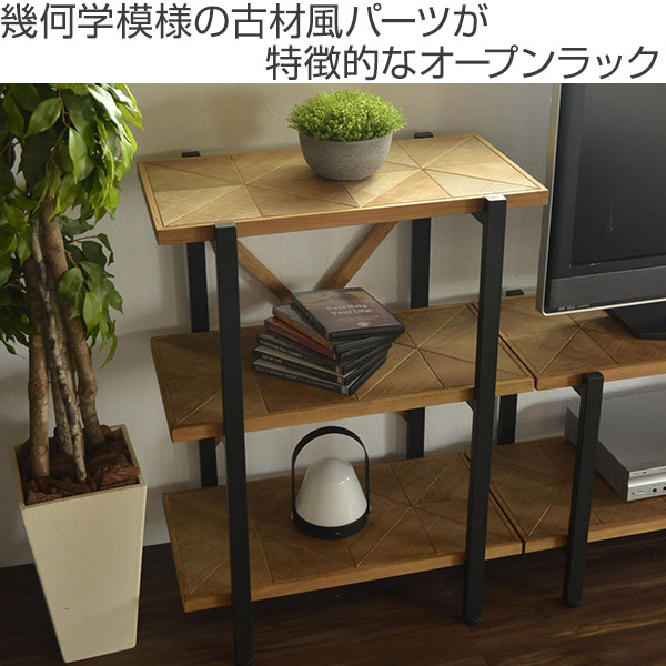 オープンラック 3段 組木 古材風 KALEIDO 約幅61cm ( 本棚 収納棚 収納ラック シェルフ フリーラック アイアンシェルフ ラック オープンシェルフ 飾り棚 棚 リビング収納 家具 おしゃれ 収納 木目 木製 一人暮らし 約幅60 )