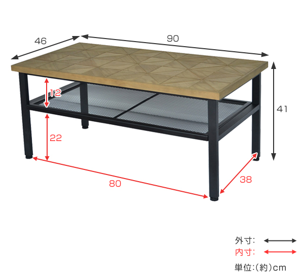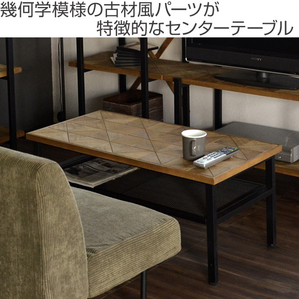 ローテーブル センターテーブル 組木 古材風 KALEIDO 幅90cm ( テーブル 机 デスク 収納付き 棚付き リビングテーブル コーヒーテーブル 家具 インテリア 木製 木製テーブル つくえ リビング おしゃれ 一人暮らし 幅90 )