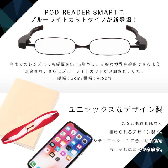 老眼鏡 ブルーライトカット ケース付 3ヶ月保証 おしゃれ ポッドリーダースマート メンズ レディース 超軽量 薄型 メガネ コンパクト POD READER SMART 【PRS-bc】
