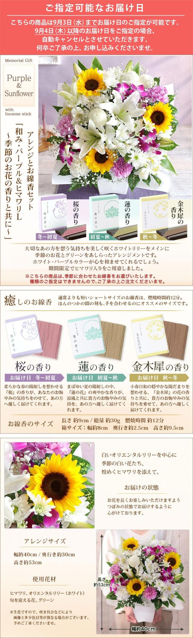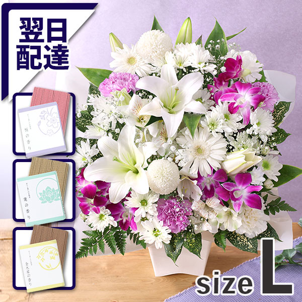お盆 お供え 花 お供え花 お供えの花 あす着 お悔やみ 仏花 仏 供花 季節 旬 ユリ 旬のおまかせアレンジお線香セットL