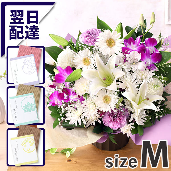 お盆 お供え 花 お供え花 お供えの花 あす着 14時まで お悔やみ 仏花 仏 供花 季節 旬 ユリ 旬のおまかせアレンジお線香セットM