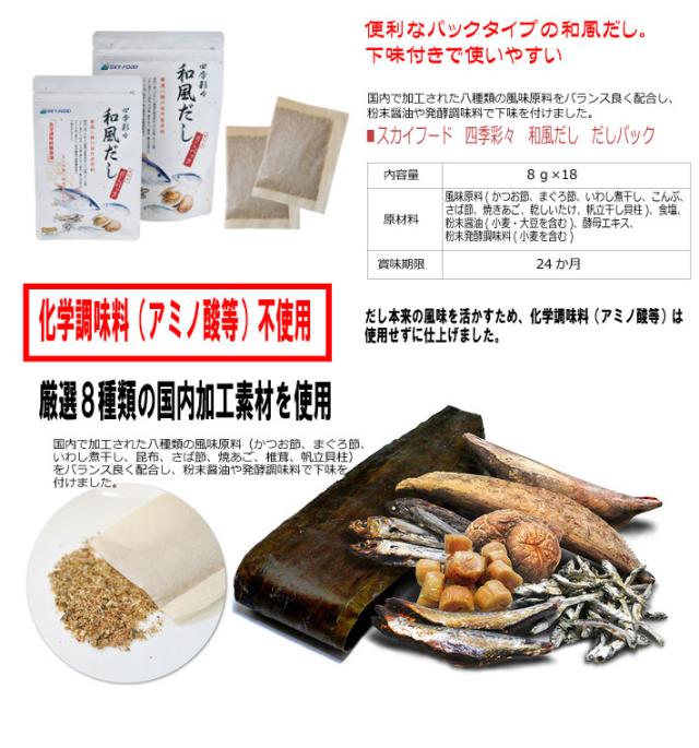 【化学調味料無添加】スカイ・フード 四季彩々和風だし だしパック 8gX18