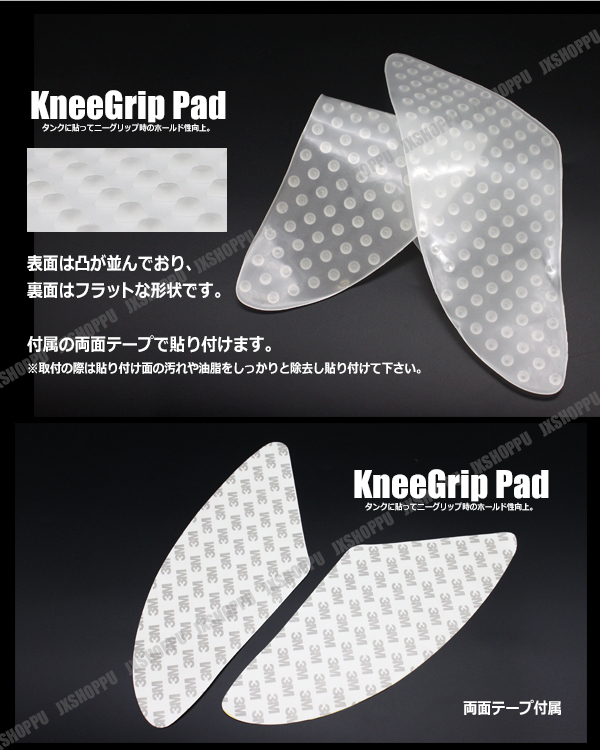 バイク用 汎用 ニーグリップパッド [ 半透明 ] タンク保護 タンクパッド タンクガード ラバー製プロテクター ガード サーキット 送料無料 安定 安心 疲労 軽減 通勤 通学 痛み 防止 ひざ ヒザ 挟む 装備 グッズ 単車 レプリカ レーサー ツアラー 二輪 シール ステッカー 補修