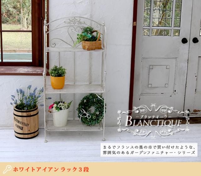 【ブランティーク ホワイトアイアンラック 3段】