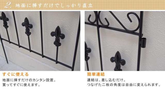 ちょっとさびしい玄関付近や、外壁沿いの味気ない花壇などに、華やかで高級感のあるフェンスをプラスすれば、立体感・躍動感が生まれます。