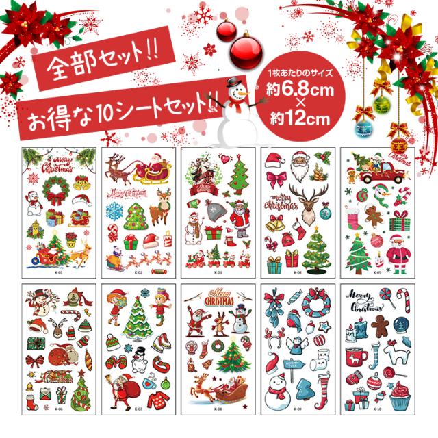 【10枚セット】Xmasボディシール ステッカー クリスマス デコレーション ボディーペイントタトゥー パーティー 仮装 コスプレ XMASSEL10S