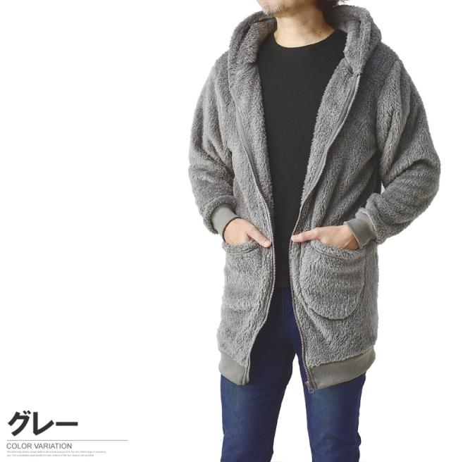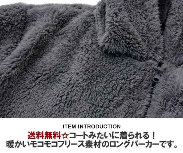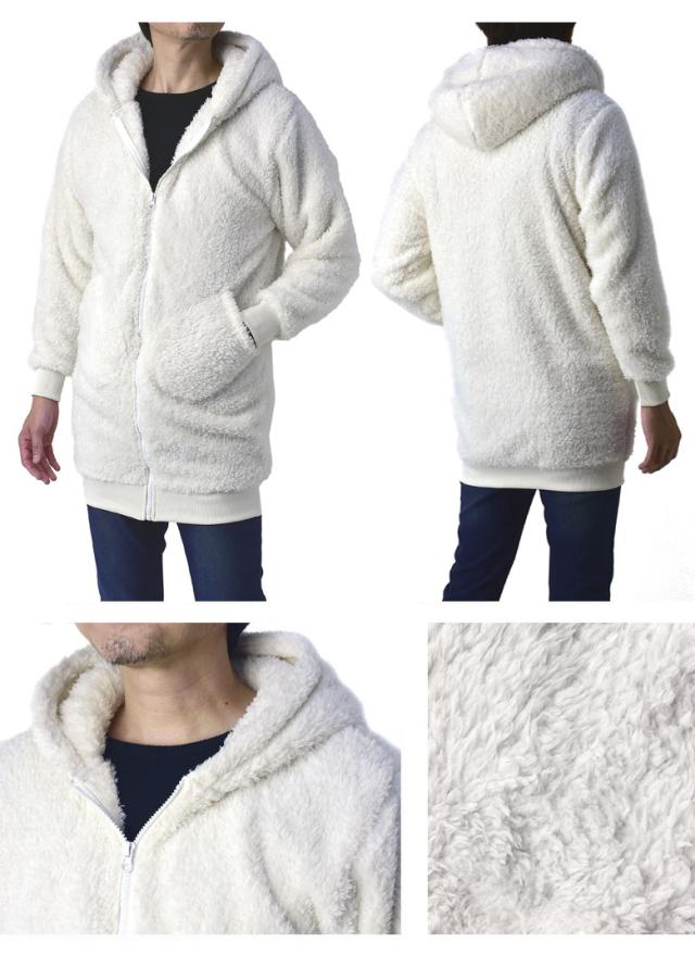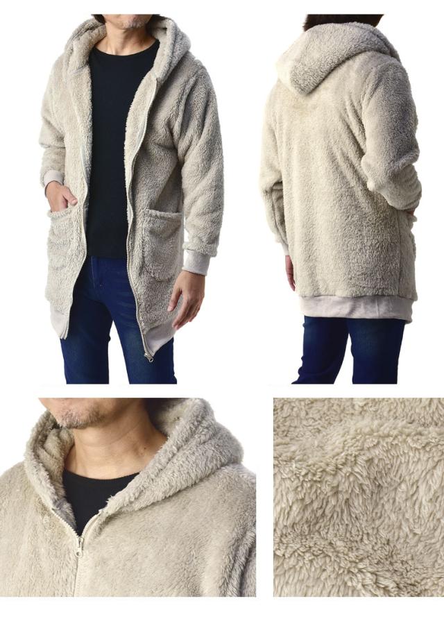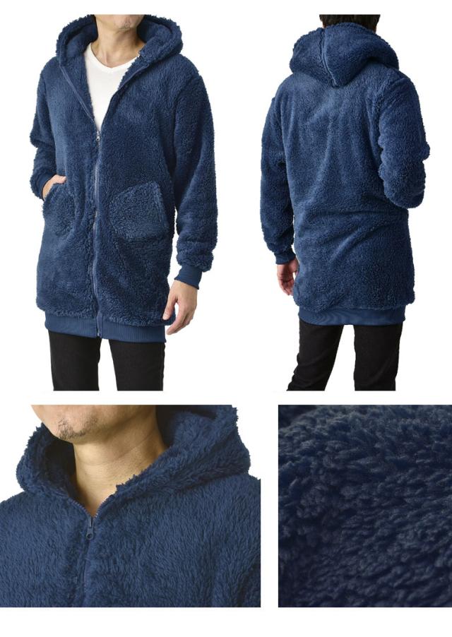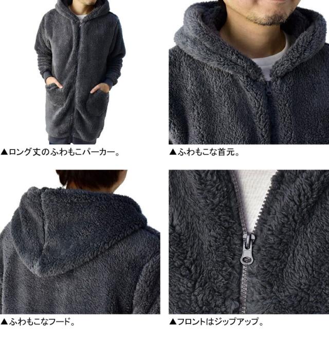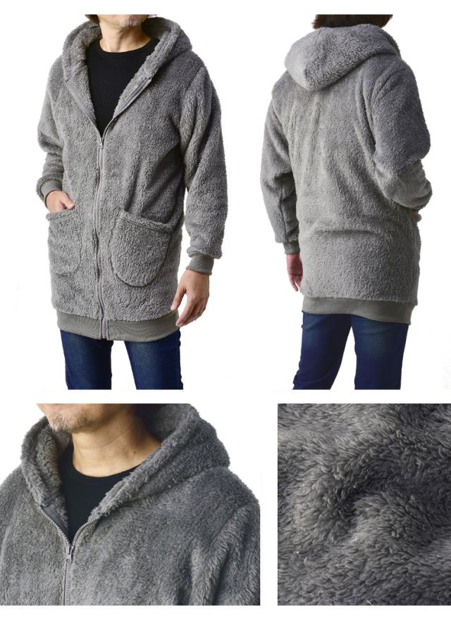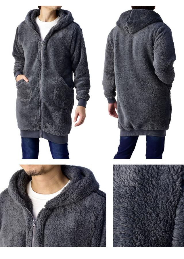 超モコモコ ロングパーカー メンズ ロング丈 ボアフリース ジップパーカー コートガウン アウター 送料無料【F1G】