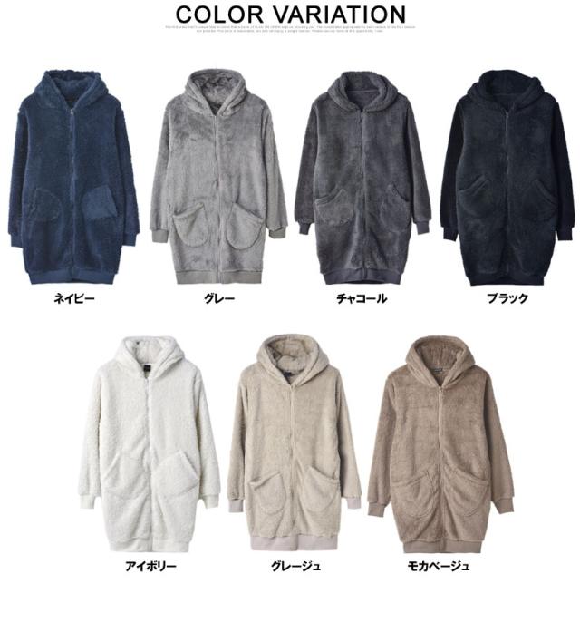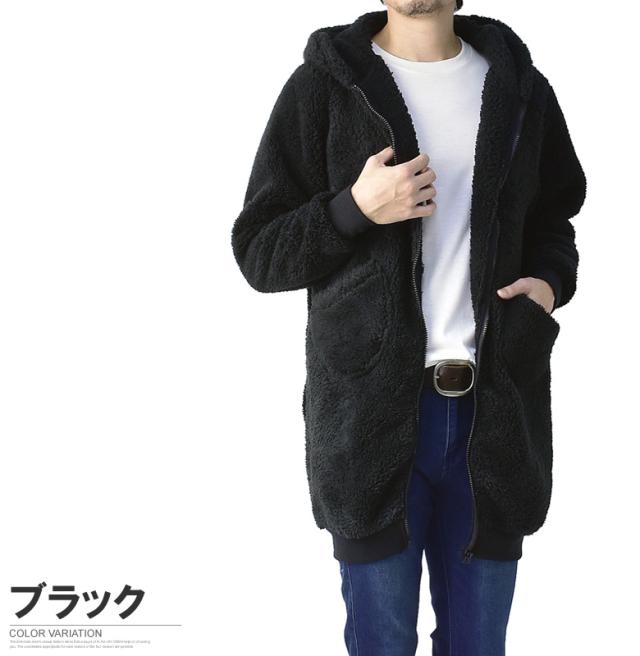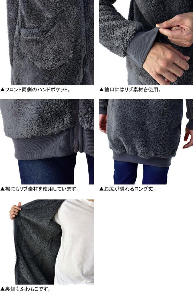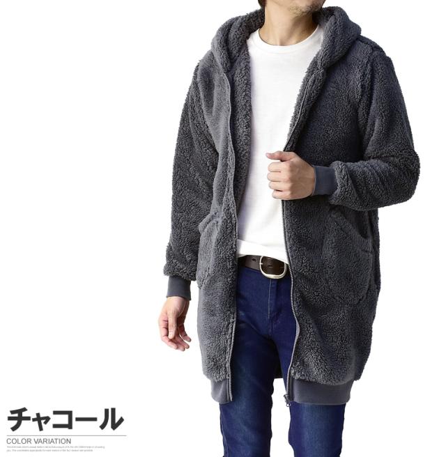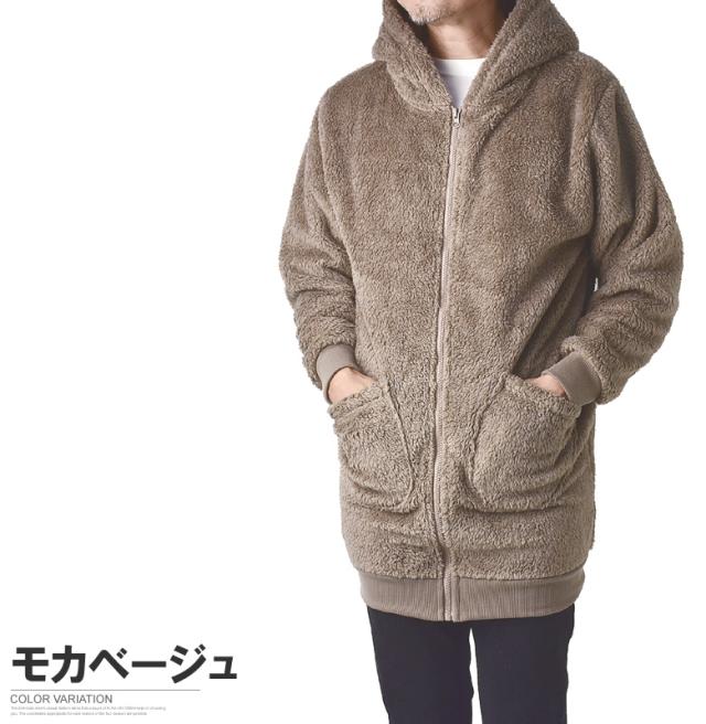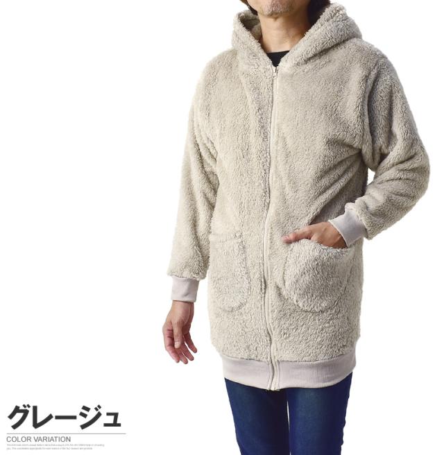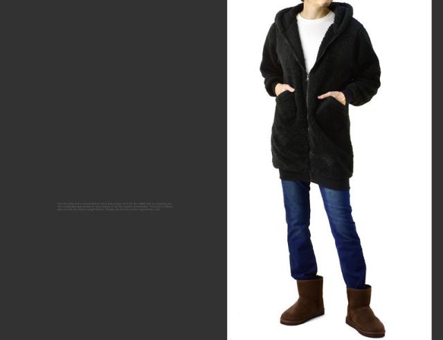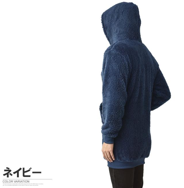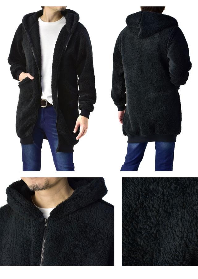 超モコモコ ロングパーカー メンズ ロング丈 ボアフリース ジップパーカー コートガウン アウター 送料無料【F1G】