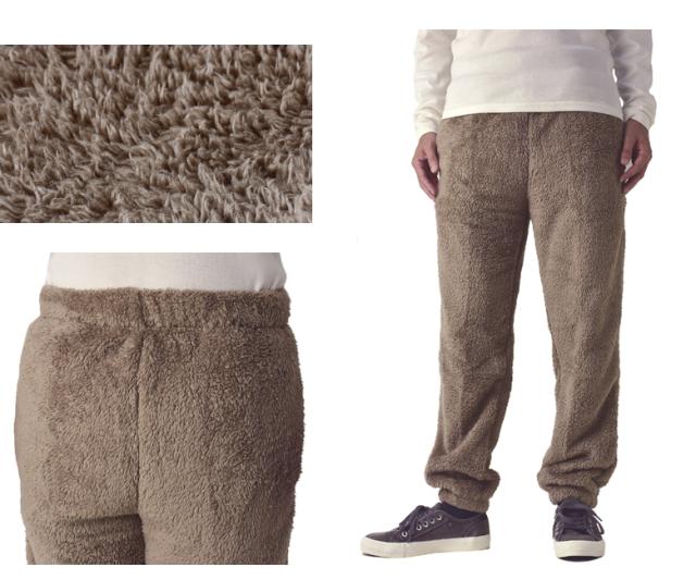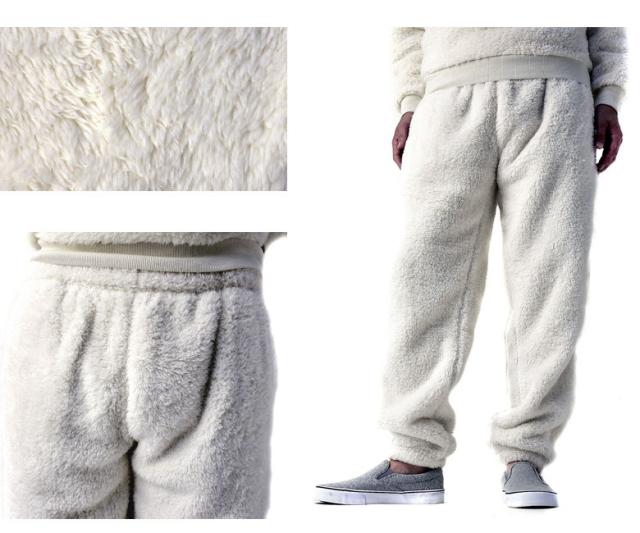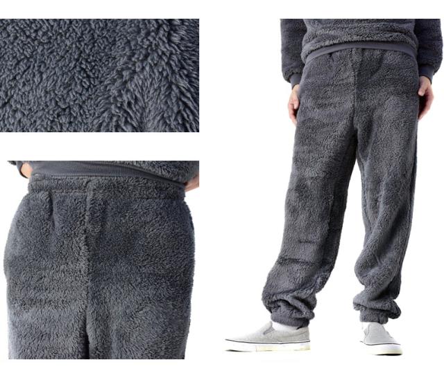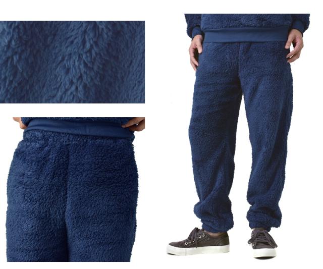 表側も内側も、長い毛足のボアフリースを使用した、ボアフリースイージーパンツです。