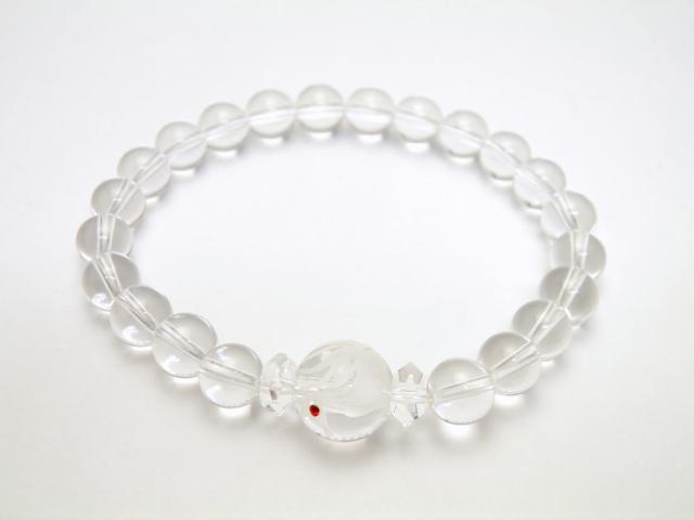 九尾の狐 手彫り玉 水晶(ラインストーン入り)12mm ブレスレット 天然石 パワーストーン