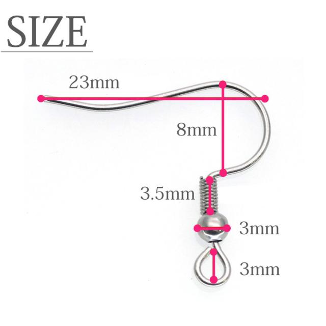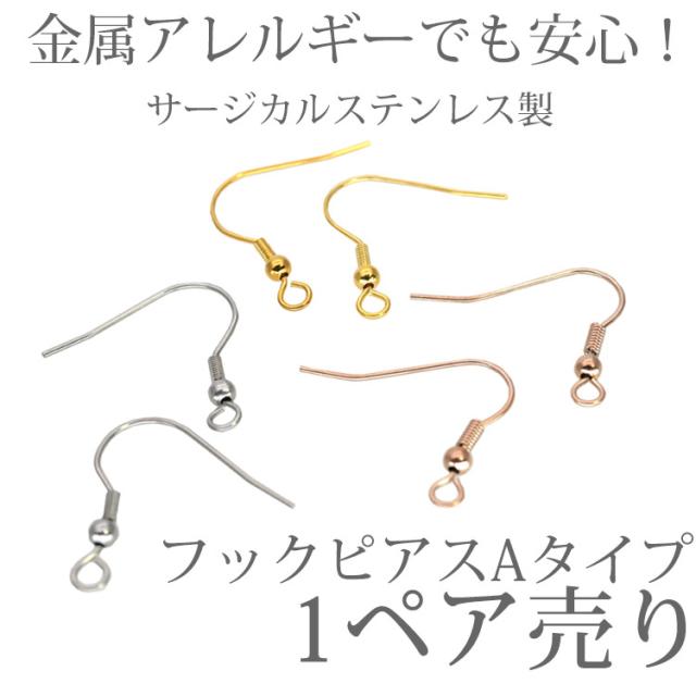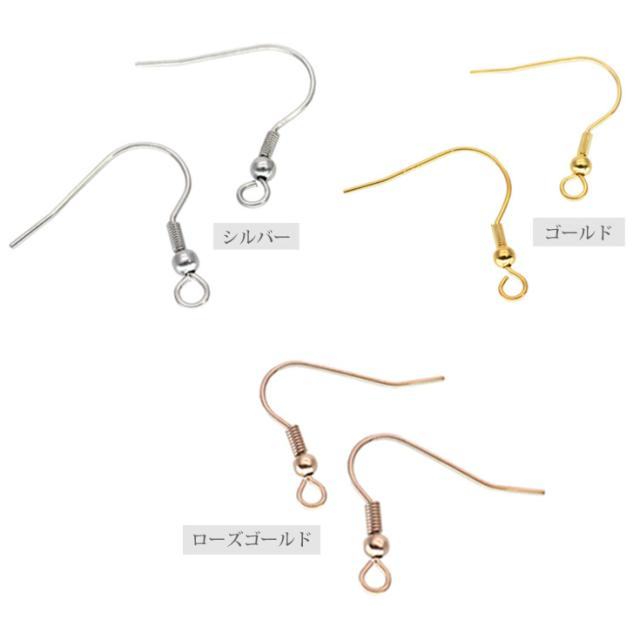 金属アレルギー対応 アクセサリーパーツ ピアス用金具 フックピアス金具Aタイプ ワイヤーフック バネ付き ハンドメイド 手芸 パーツ サージカルステンレス