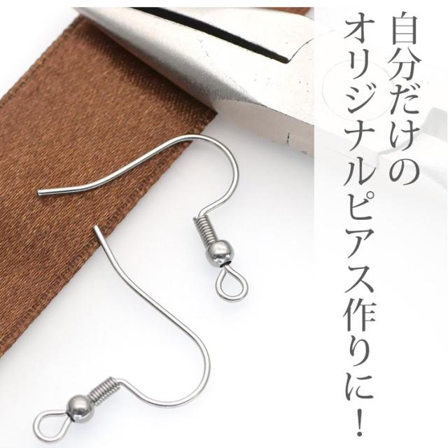 サージカルステンレス製のアクセサリーパーツ、手作りアクセサリーのパーツに欠かせないピアス用金具です。フレンチフックタイプのピアス金具です。医療用にも使用されるサージカルステンレス製ですので、金属アレルギーの方も安心してご利用いただけます。