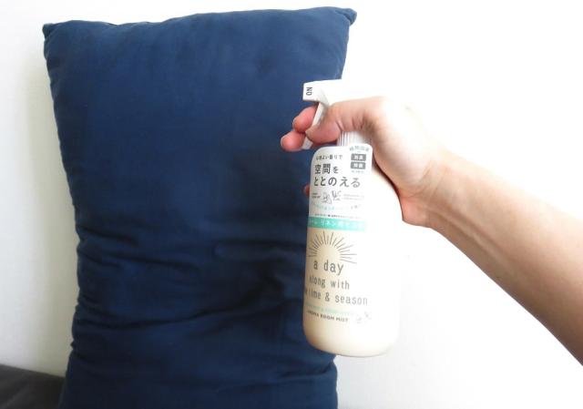 空間だけでなく布製品にも使用できるルームミスト。クッションや、カーテンなど気になるところにシュッと吹きかけるだけ。 |