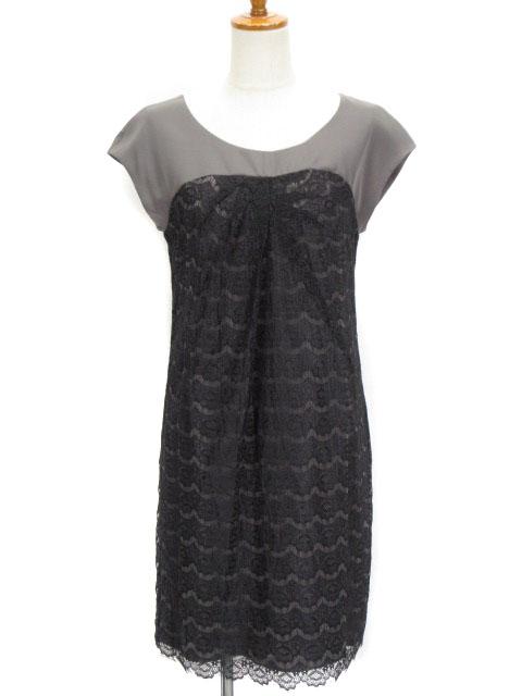 【中古】アンタイトル UNTITLED ワンピース レース レイヤード フレンチスリーブ 2 黒 ブラック グレー レディース