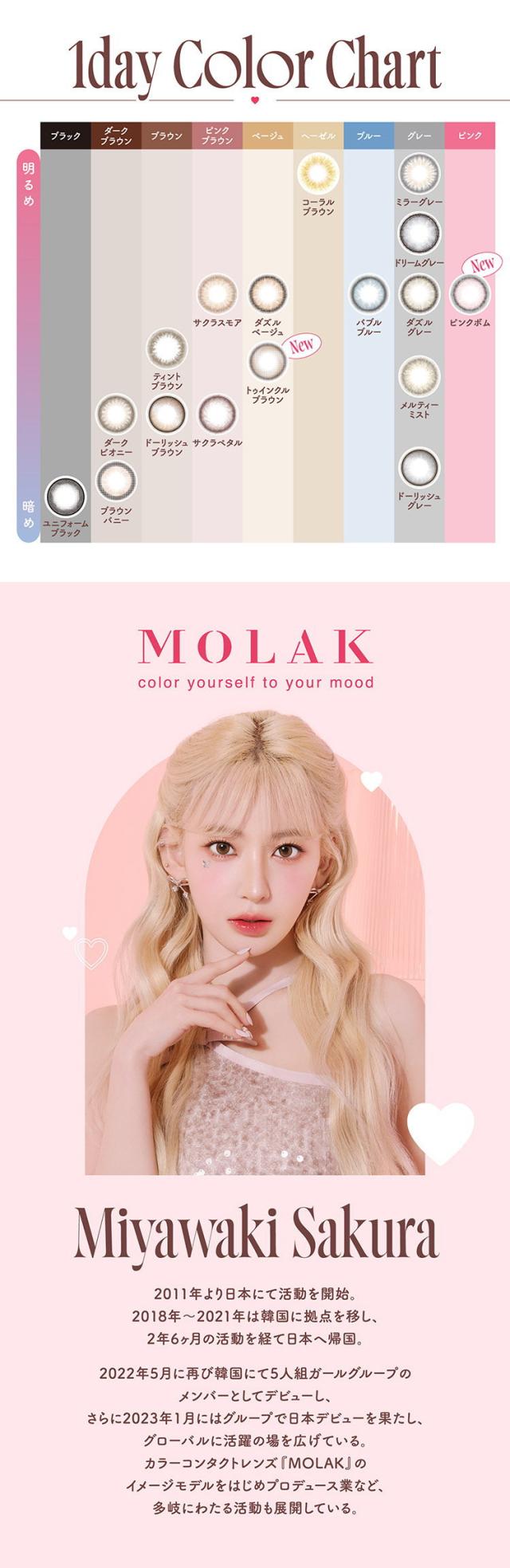 (キャンペーン2箱購入で+1箱) カラコン ワンデー MOLAK1day モラクワンデー UV 高含水55% 1箱10枚 度あり 度なし 宮脇咲良 big_bc