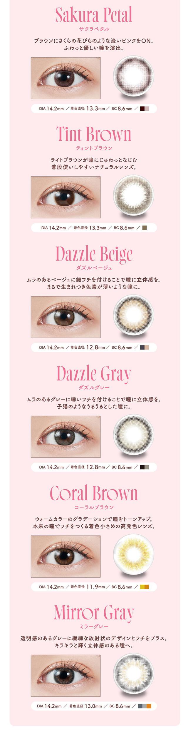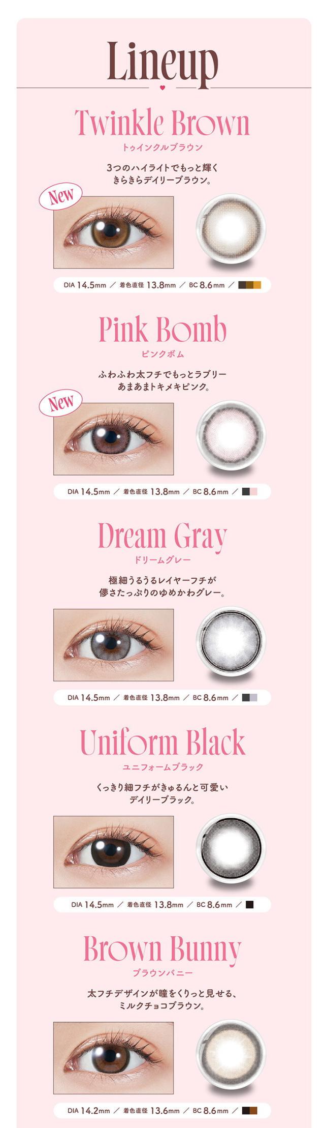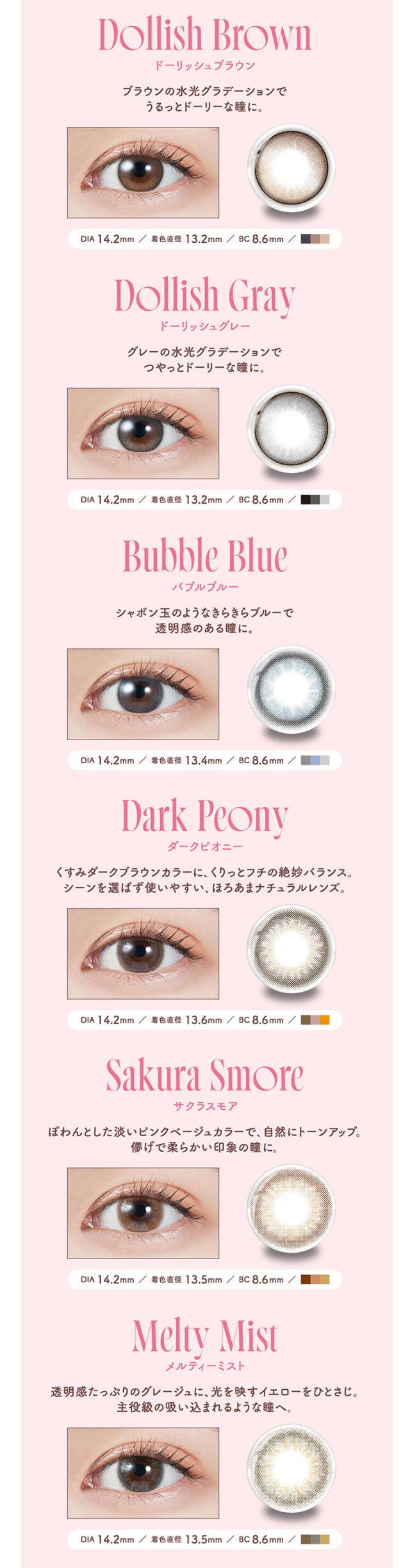 ・カラー:トゥインクルブラウン ピンクボム ドリームグレー ユニフォームブラック ブラウンバニー ドーリッシュブラウン ドーリッシュグレー バブルブルー ダークピオニー サクラスモア メルティーミスト サクラペタル ティントブラウン ダズルベージュ ダズルグレー コーラルブラウン ミラーグレー