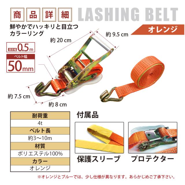 ラッシングベルト ガチャガチャ ラチェット式 バックル式 2本セット Jフック 幅50mm 固定側0.5m 巻側8m 工具 作業