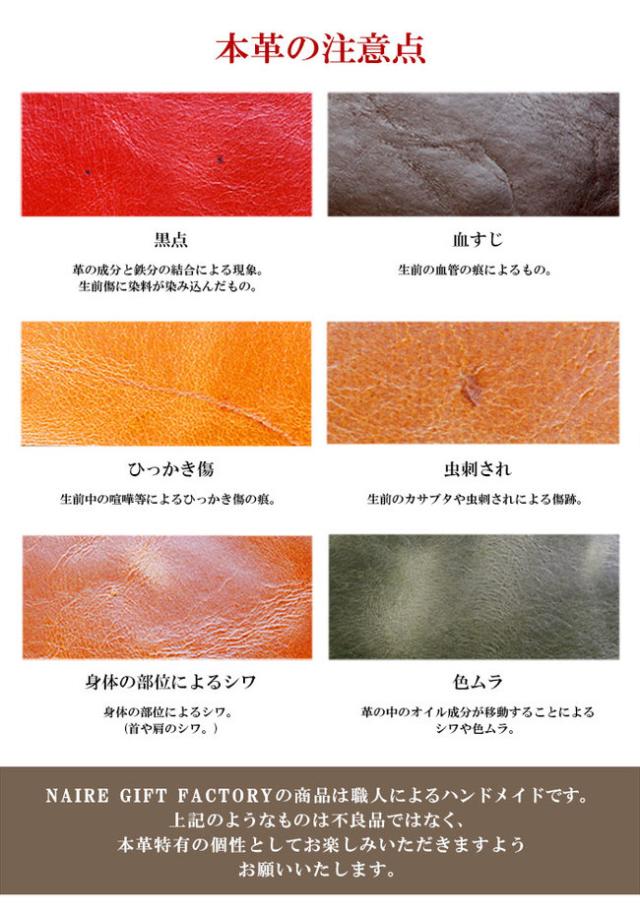 ※天然素材を使用し、ハンドメイドで作成した商品になりますので、革本来のキズや製作時の汚れ等がある場合がございます。また、仕様変更や製作時期によって細部が若干画像と異なる場合がありますのでご了承ください。デザイン、構造的に大きく異なる場合はご案内致しますが、お気になられる方は必ず事前にご確認ください。