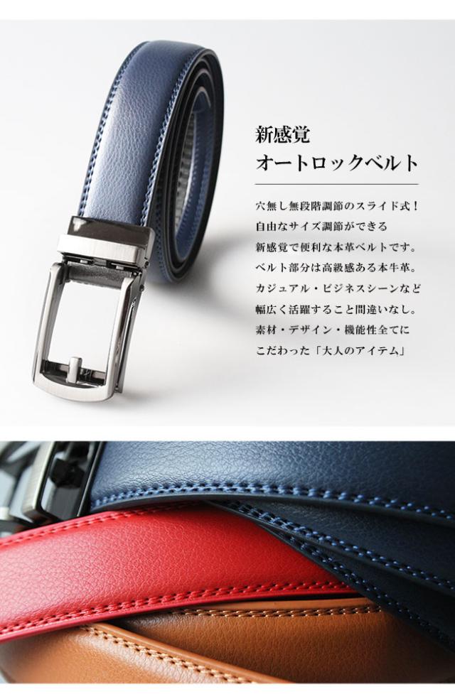 メール便送料無料 レザーベルト クリックベルト メンズ レディース ユニセックス 牛革 オートロック 無段階調整 サイズ調整可能 シンプル 大きいサイズ ブラック ブラウン ダークブラウン ネイビー レッド ホワイト 【ギフト】 ab-bt001