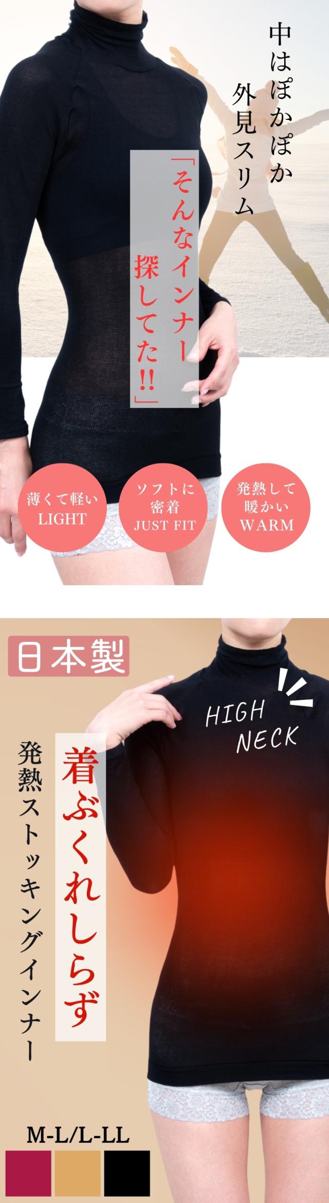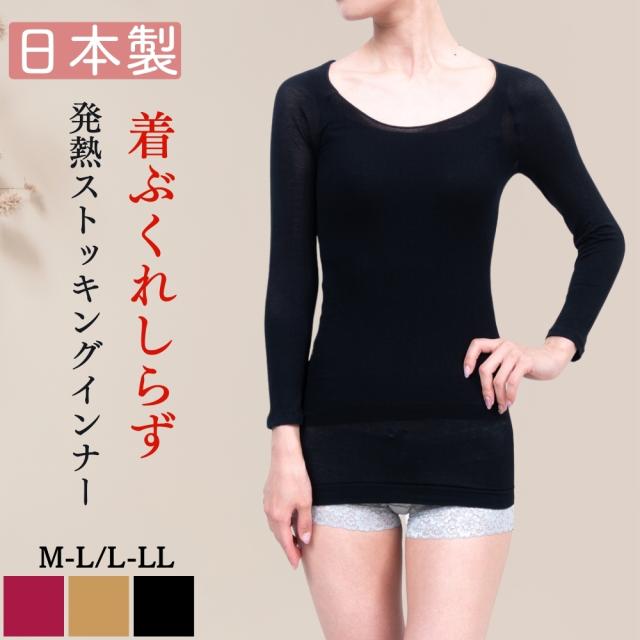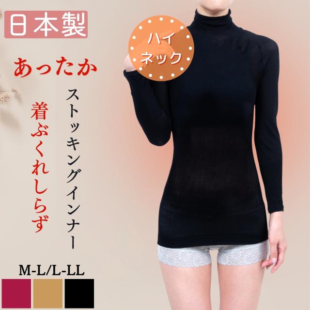 あったかインナー ハイネック インナー 発熱 ストッキングインナー 8分袖 日本製 タートルネック ヒートインナー レディース ストッキング 生地 重ね着 七分袖 防寒 インナー 冬 薄手 あったか インナーシャツ 肌着 薄い 暖かい フィット 長袖 ワイン ブラック ベージュ