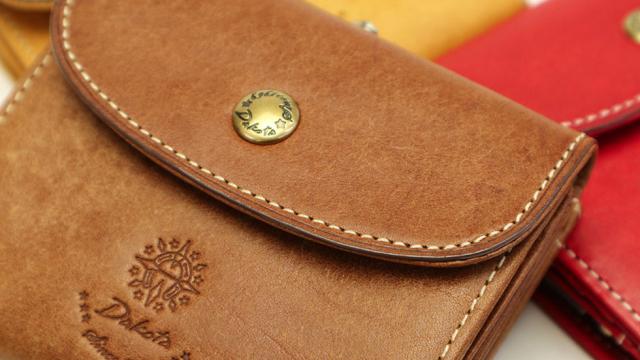 - Dakotaは、四つ目です。 今回は二つ折りの財布。色もキャメルより少し濃いめのブラウン。金の金具とあっていて、上品です。大切に使います。