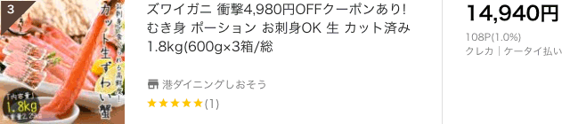 - 正月用に買いましたが,割り箸みたいなカニでした,味とかそんな問題じゃなしによくこんなもんを売るな?って正月早々パチンコで負けてドブに金捨てたと思ってる。