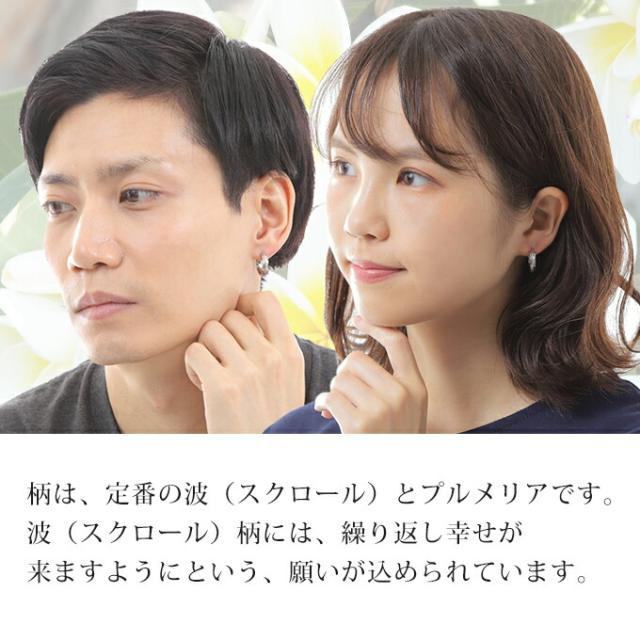| ハワイアンジュエリー ステンレス316L スクロール プルメリア マイレ フープタイプピアス | |