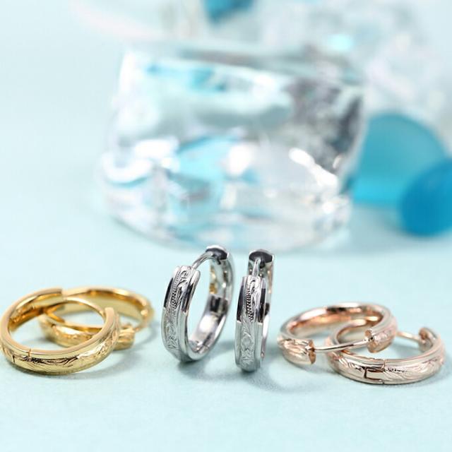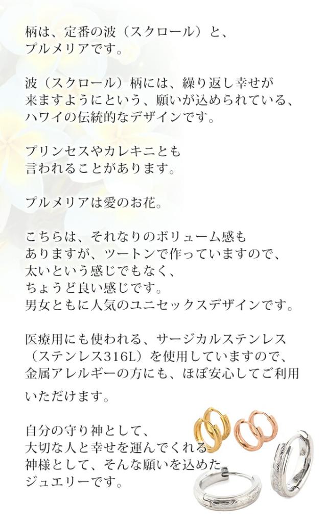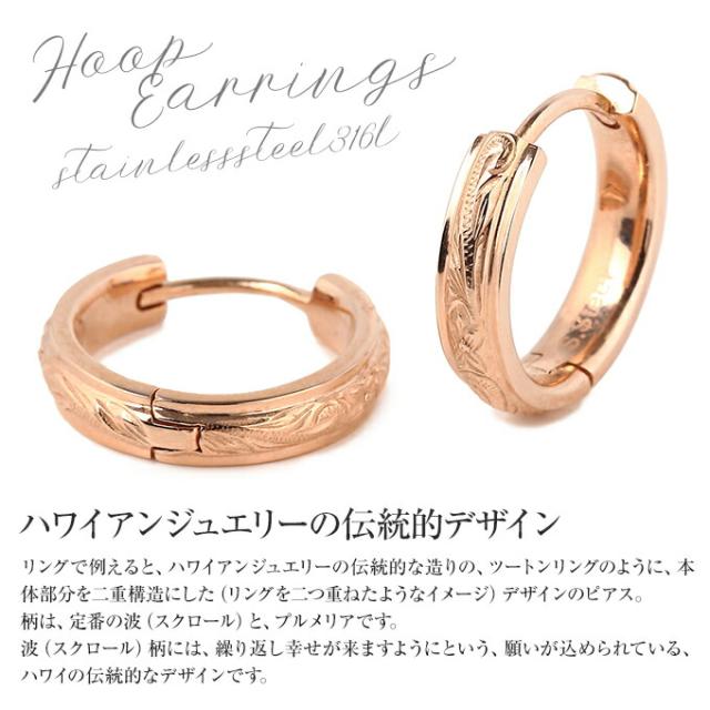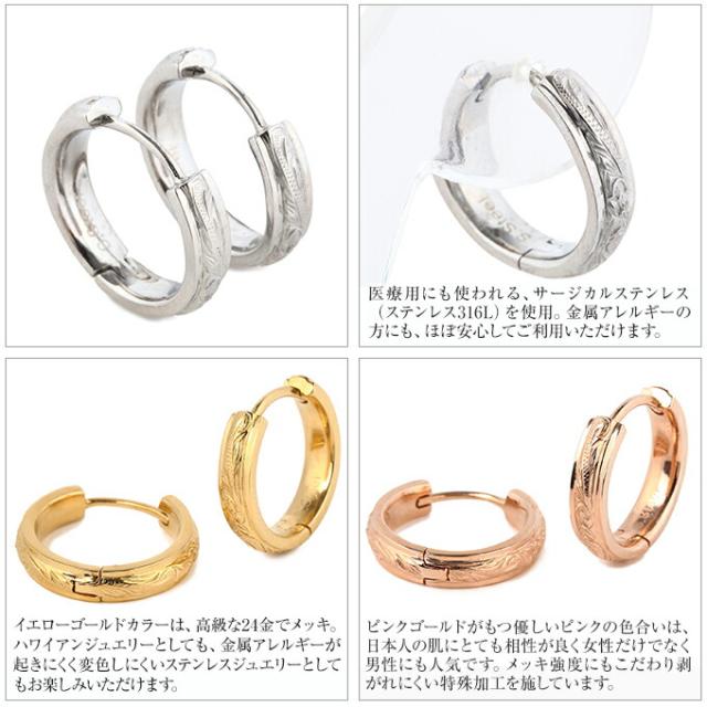 ハワイアンジュエリー ピアス フープ イヤリング サージカル ステンレス 316 シルバー イエロー ピンク ゴールド 24金 選べる3色 プルメリア 波 金属アレルギー プレゼント レディース メンズ 送料無料 おしゃれ 人気 かわいい ギフト