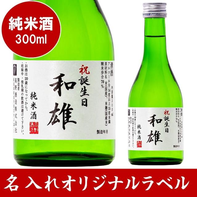 名入れ お酒 日本酒 オリジナルラベル 純米酒 300ml カートン入 辛口 新潟 高野酒造 / 名入り 名前入り ギフト プレゼント 日本酒 ミニボトル 酒 誕生日 成人祝い 退職祝い 開店祝い 周年祝い 記念品 定年退職 還暦 出産 お祝い 内祝い 命名 ロゴ のし可 大量注文可