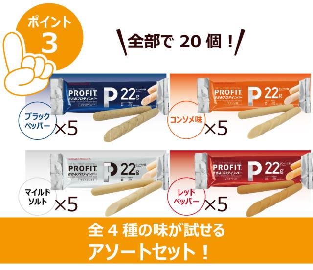 丸善 プロフィット ささみ ソーセージ 4種×5個 計20個セット プロテインバー アソート PROFIT ササミ 本州送料無料