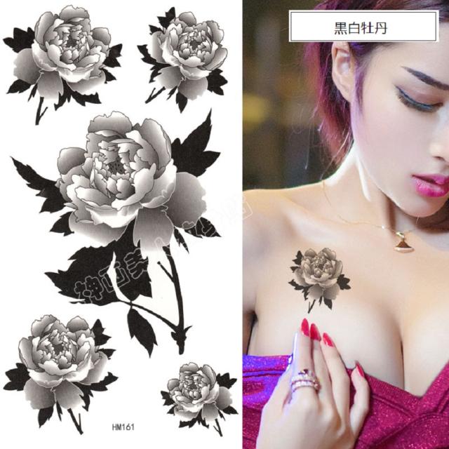 今ダケ2枚セット!!「黒牡丹柄」お洒落れ個性派に必見のタトゥーシール! インスタに盛れる自分をアピール♪ オールシーズンで貼る場所でチラ見せアイテムなど使い方も個性的!