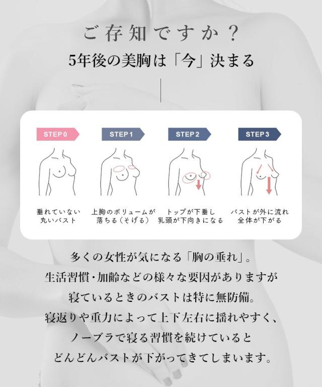 バストの横流れを予防し、高さのあるバストをキープ。