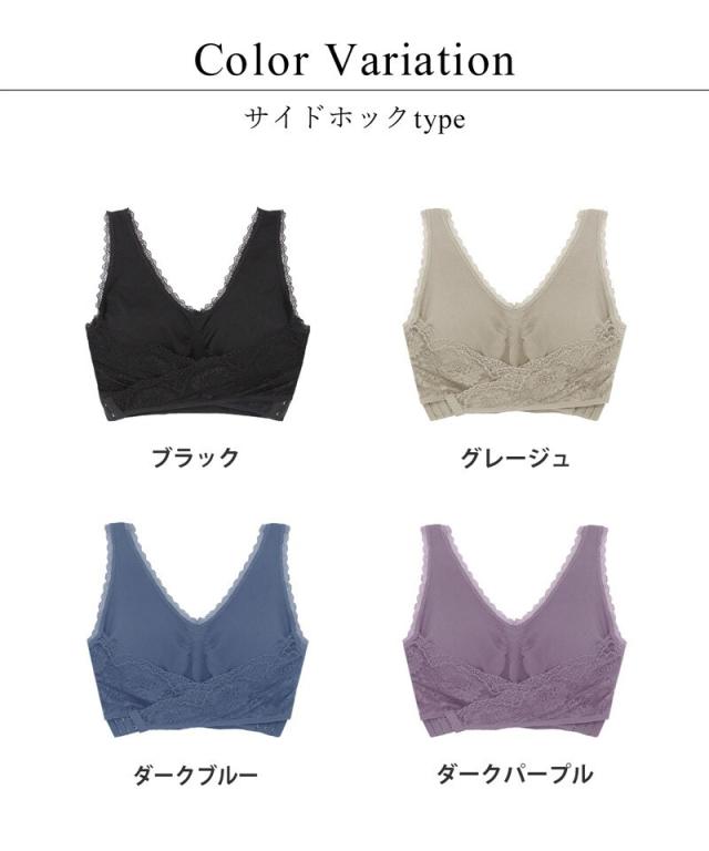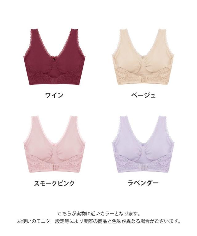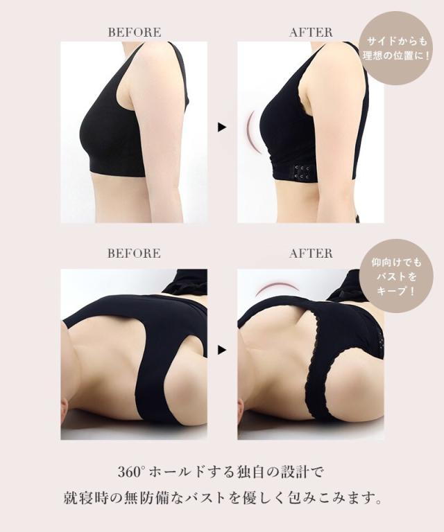 ワンタッチで装着可能。バストの横流れを防ぎつつ、うつぶせ寝でもホックの段差が気にならない仕様。