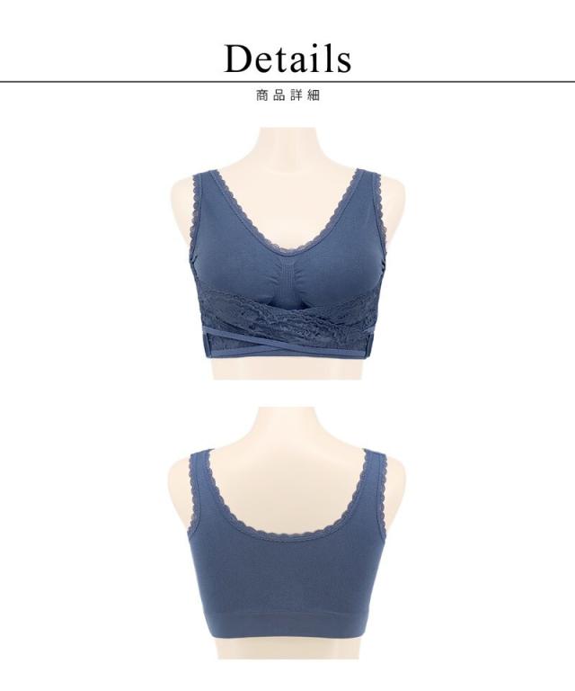 胸下でストレッチレースをクロスさせることにより、バストの固定感がUP。