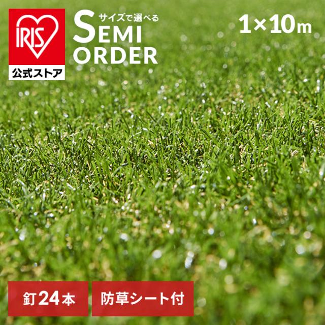 人工芝 1m×10m ロール アイリスオーヤマ 防草シート一体型 芝生 耐久性 U字針 24本 防カビ機能付 簡単設置 庭 ベランダ ガーデニング テラス バルコニー DIY ペット 犬 子供 リアルな質感 ふかふか 人工芝ロール 芝生ロール リアル防草人工芝 RP-30110 *