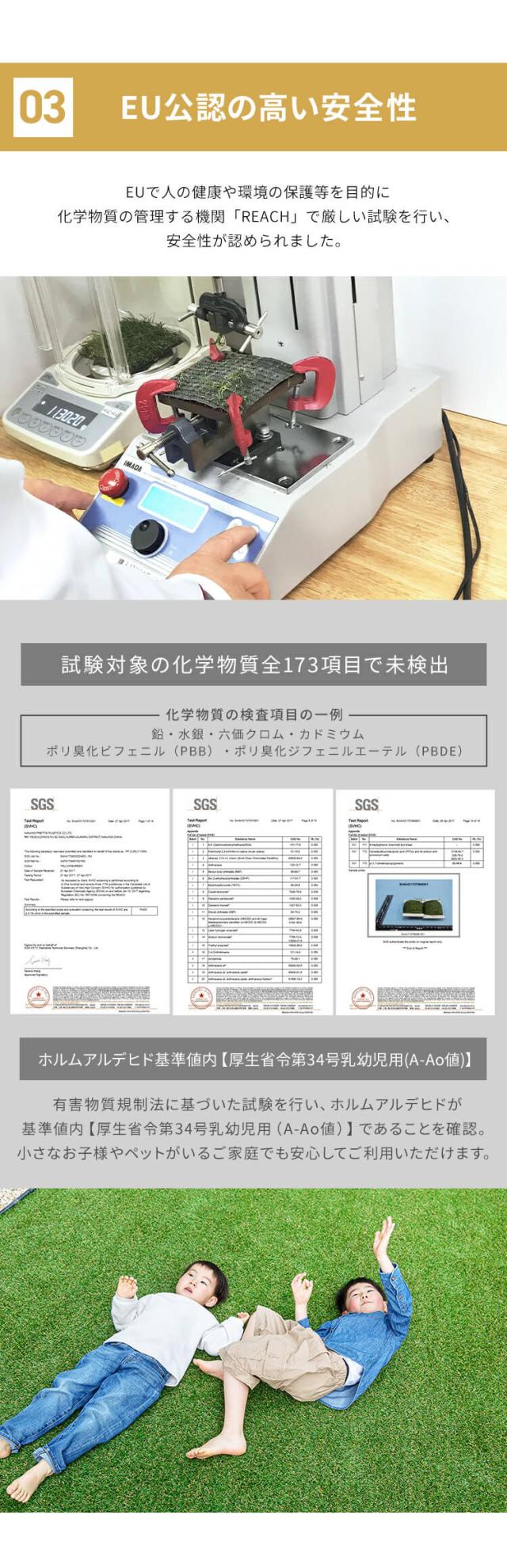 従来の人工芝にあるような水抜き穴(雑草が生えやすい箇所)を無くすことに成功しました。