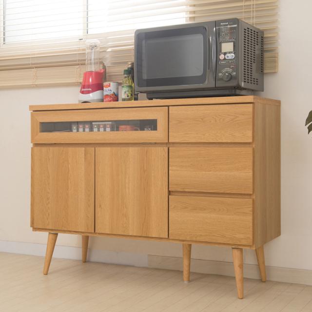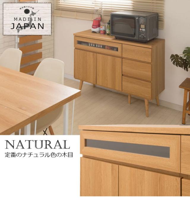 日本製 キッチンカウンター 幅110cm ナチュラル 家電型タイプ 完成品 組み立て不要 ガラス窓付きレンジ台 レンジラック(代引不可)【送料