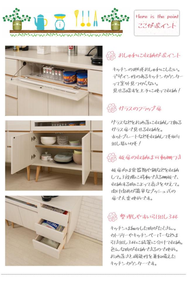 レンジ台として、またストッカーとして多彩に機能性を発揮するカウンターシリーズ。