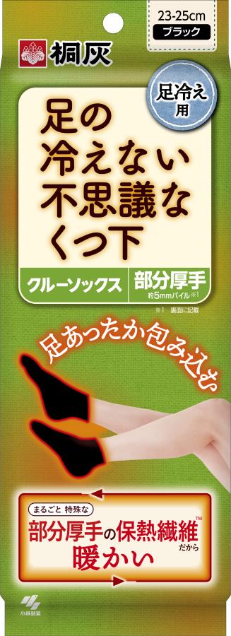 足の冷えない不思議なくつ下 クルーソックス ブラック 23-25cm 桐灰 冷え 靴下 あったか【ネコポス】送料無料