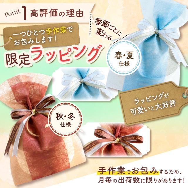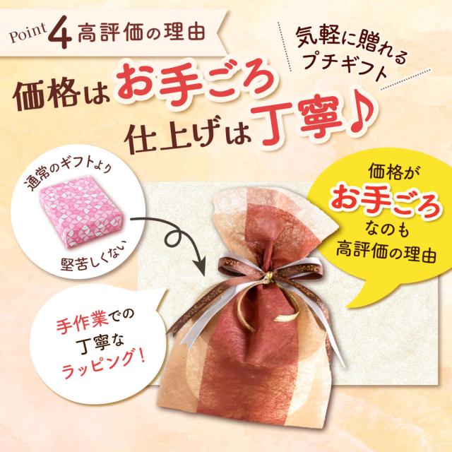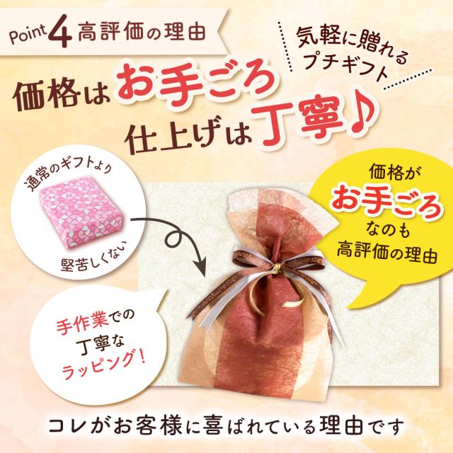 - バレンタインのお返しにといろいろと探していましたが、気になる商品を見つけたので今回購入させていただきました。 綺麗に梱包され非常に満足しています。 ありがとうございました。