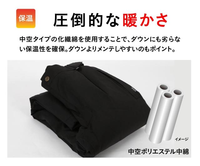 中空タイプの化繊綿を使用することで、ダウンにも劣らない保温性を確保。ダウンよりメンテしやすいのもポイント。