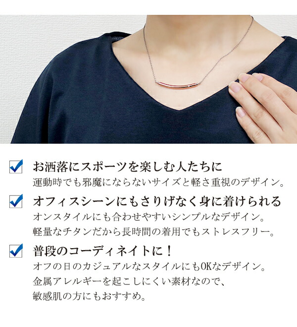スタイリッシュなラウンドバーのチタンネックレスです。