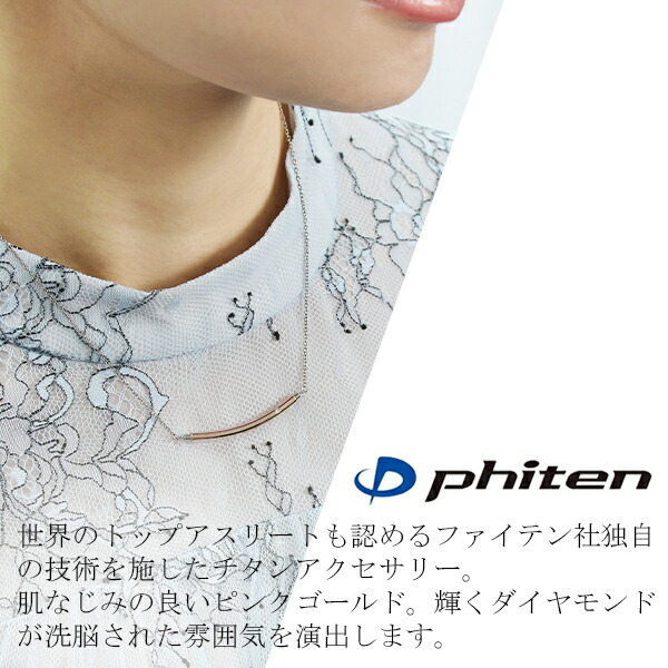 ファイテン ネックレス チタン レディース fe-fe phiten ダイヤモンド ラウンド ライン バー チタンネックレス ピンクゴールド スポーツ