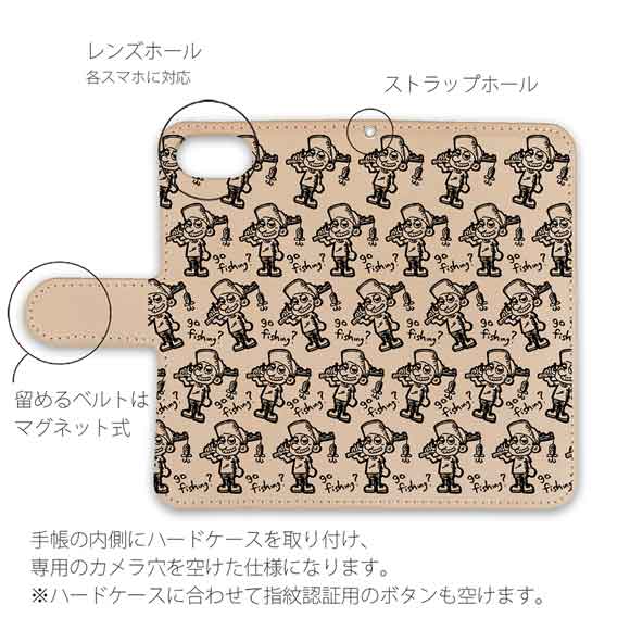 スマホケース 手帳型 iPhone17 Pro Max iPhone Air iPhone16 Pro Max 16 Plus 全機種対応 本革 革 皮 ヌメ革 iPhone15 Pro Max 15 Plus Phone14 Pro Max Xperia 10 VI Galaxy AQUOS ARROWS Pixel10 Pro XL 釣りざんまい 釣り好き少年がやってきた